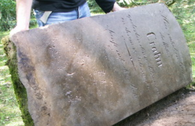 Stein: Es sind nur die 3 untersten Zeilen der Inschrift erhalten